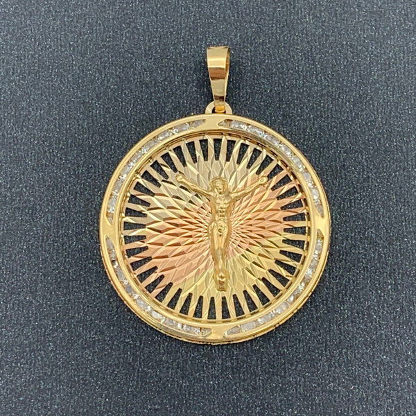 • Channel-set CZ stones give the medallion a unique, intricate look
