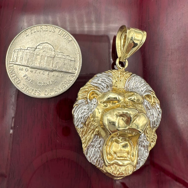 1.6” 10K Yellow Gold Roaring Lion Pendant