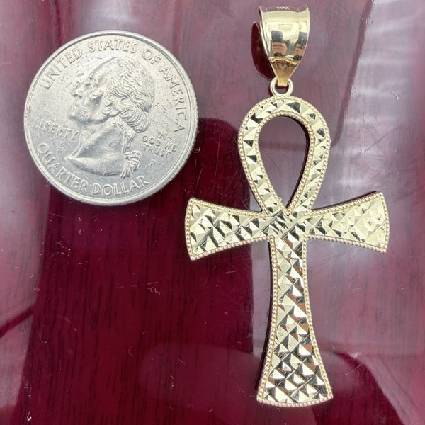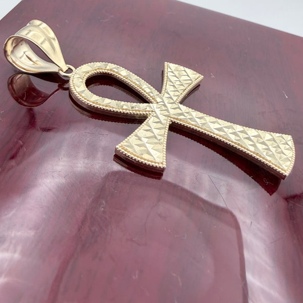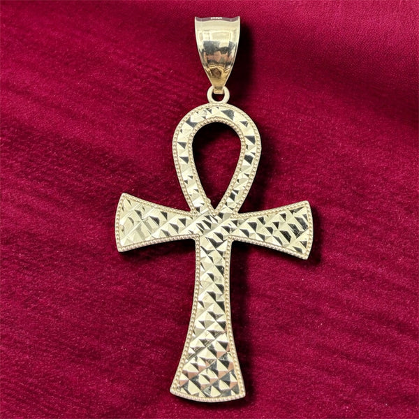 Rock this 14K gold Ankh pendant and let that diamond cut texture do the talking—it sparkles like crazy in any light. At 3.6 grams, you're getting real substance without the bulk, and the 6mm bail clearance means you can thread it through basically any chain you've got lying around. Keep it looking fire with the included polishing cloth, and it ships in a gift box so you're ready to flex or gift it straight up. Whether you're into spiritual vibes or just love the aesthetic, this piece hits different.