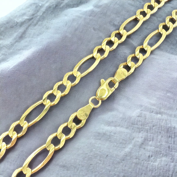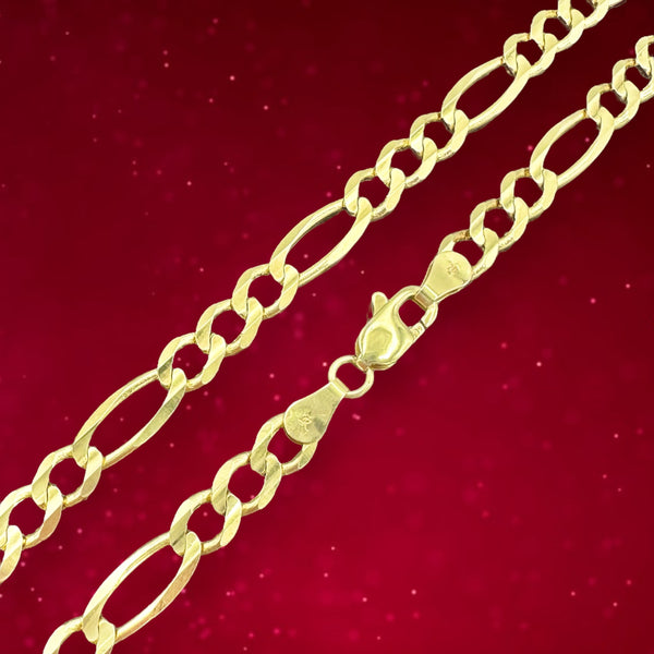This 5mm 14k Yellow Gold Solid Figaro Chain is of superior quality and provides a secure and fashionable finishing touch. Featuring a lobster clasp, 14k hallmark stamp, and weighing 16.3 grams at 22 inches, this chain is perfect for those aiming for a stylish look. Comes in a gift box with a complimentary polishing cloth, and custom orders in sizes other than 22" are also available but are not refundable.