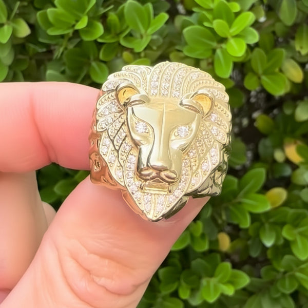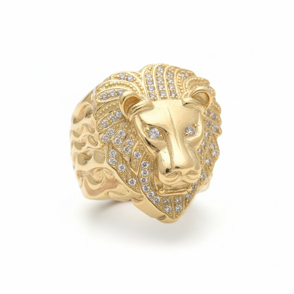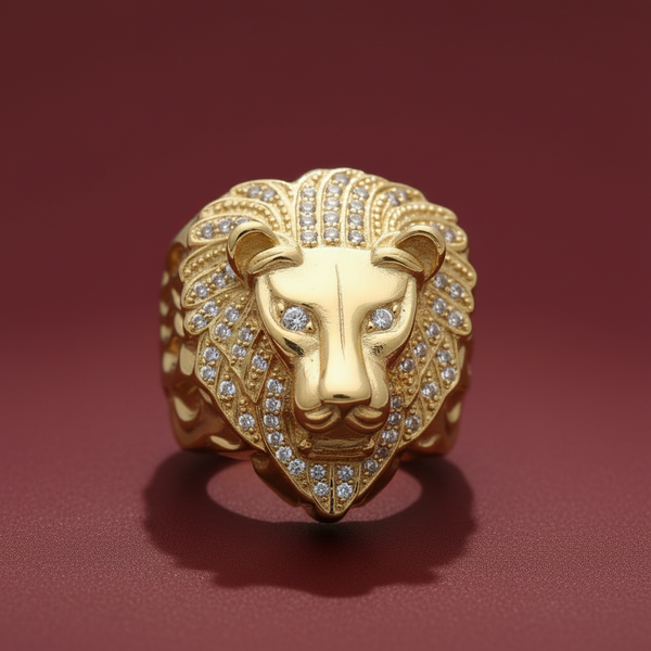 The Gold 3D Lion Head Ring is crafted from 10k gold and adorned with cubic zirconia for a striking look. Weighing 15.1 grams, it offers durability and a solid feel. Each ring comes with a complimentary polishing cloth and a gift box, making it a perfect gift option.